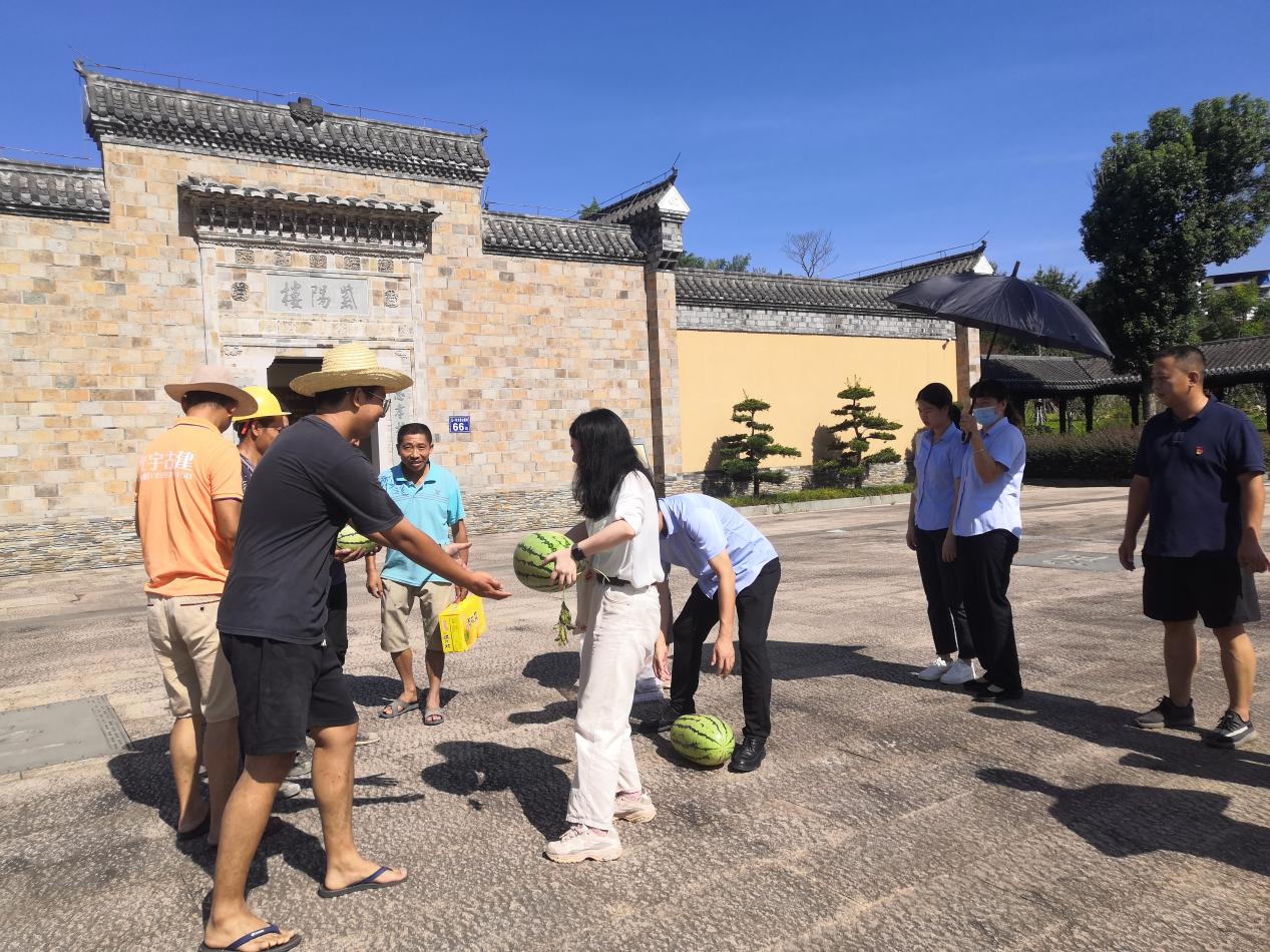 今年7月以來,五夫古鎮(zhèn)持續(xù)高溫,為進一步做好暑期安全生產、防暑降溫工作,確保一線工作者的身心健康。8月24日上午,朱子公司黨支部全體黨員走進文公山、紫陽樓、游客中心項目部工地,開展“炎炎夏日送清涼”主題黨日活動,為一線工人帶去西瓜、涼茶、正氣水等慰問物品,把清涼送到項目一線,把黨組織的關懷送到了工人們的手上。