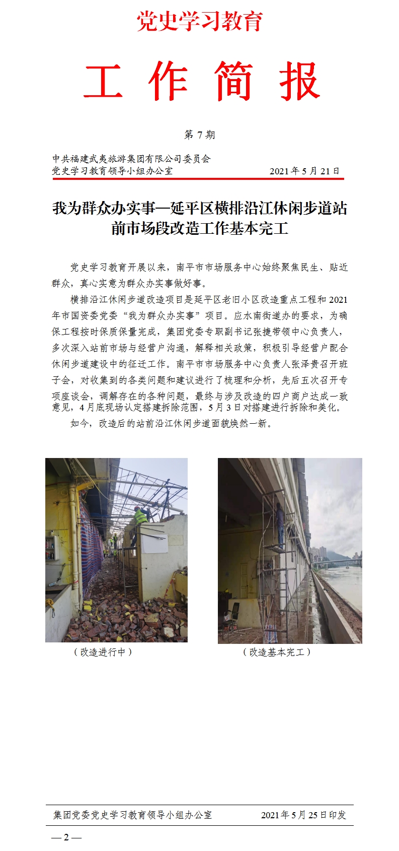 我為群眾辦實事—延平區(qū)橫排沿江休閑步道站前市場段改造工作基本完工